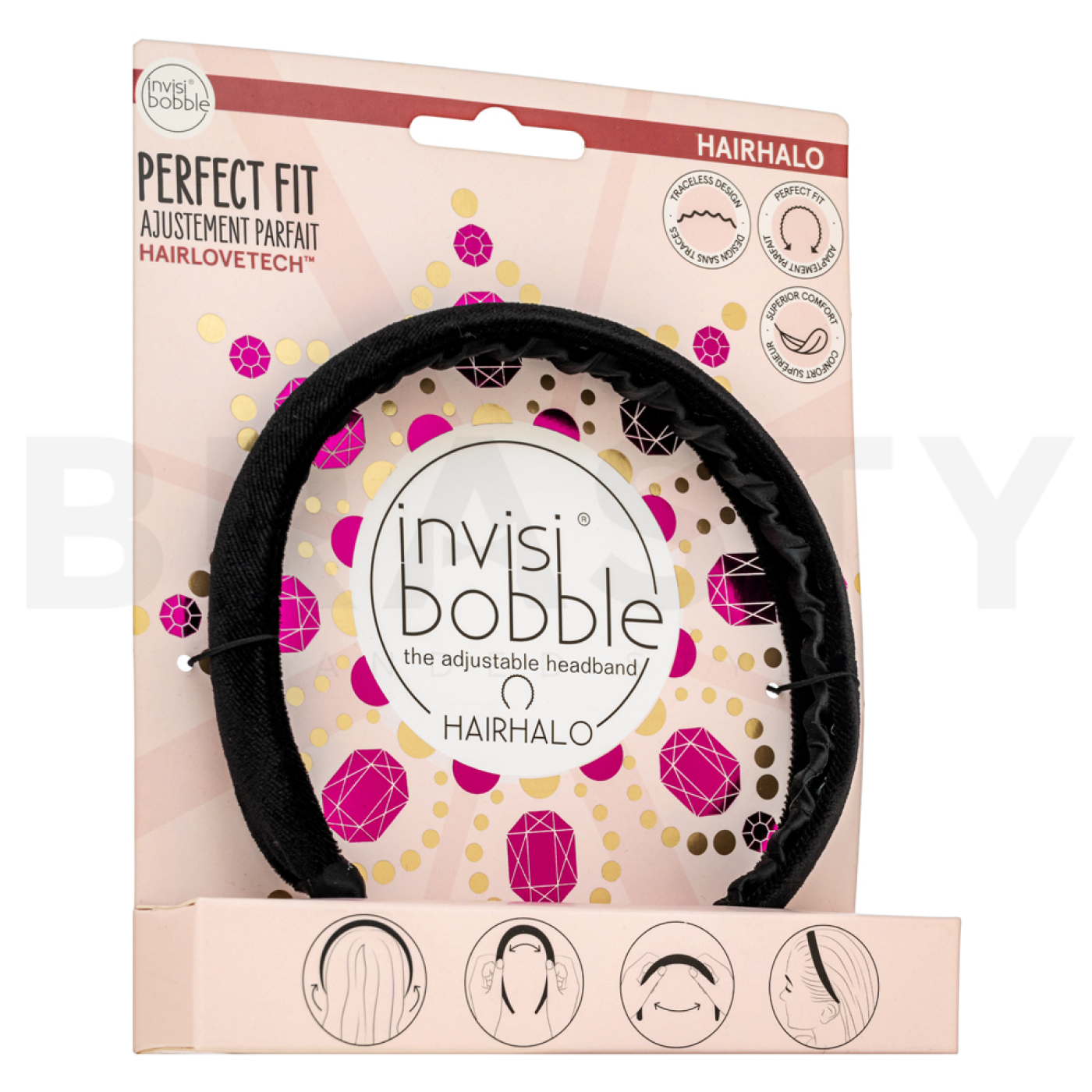 Aby uzyskać najlepsze rezultaty, wystarczy nałożyć opaskę na głowę i dostosować ją według potrzeby. InvisiBobble Hairhalo została zaprojektowana tak, aby dopasować się do kształtu twojej głowy, zapewniając wygodne noszenie przez cały dzień.